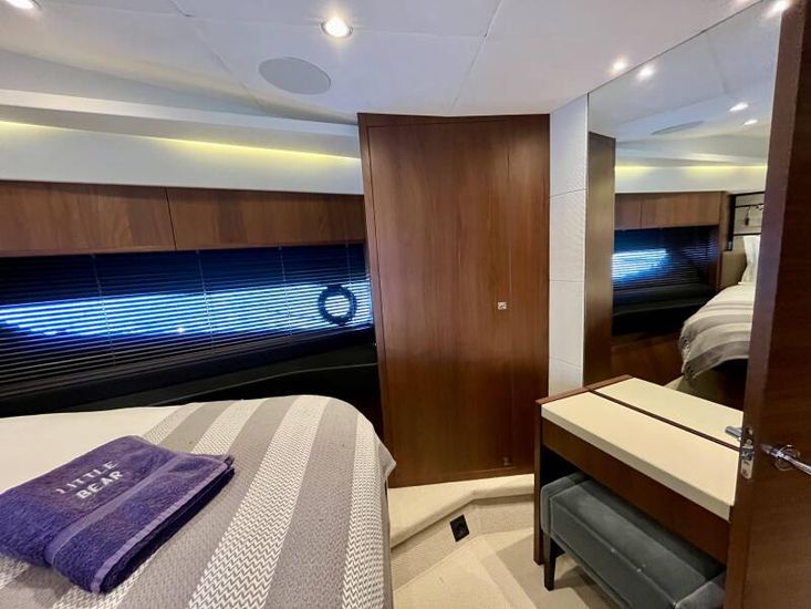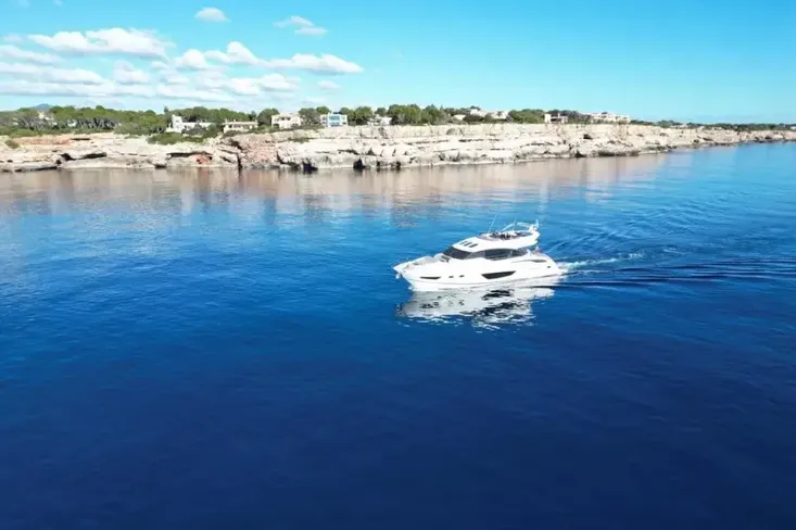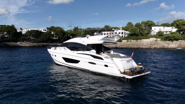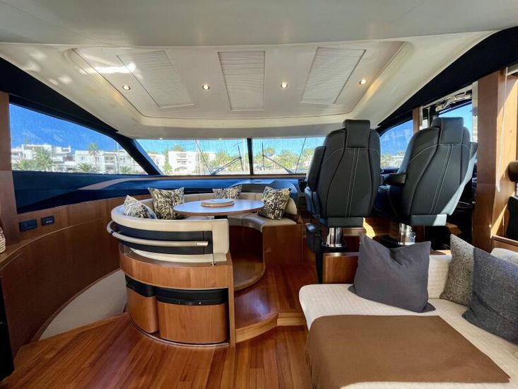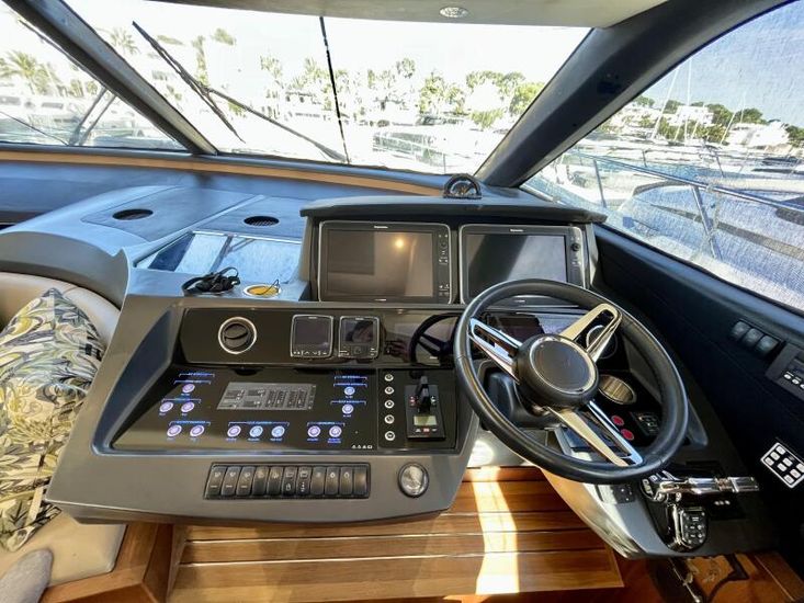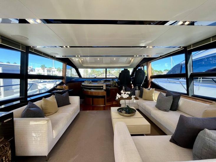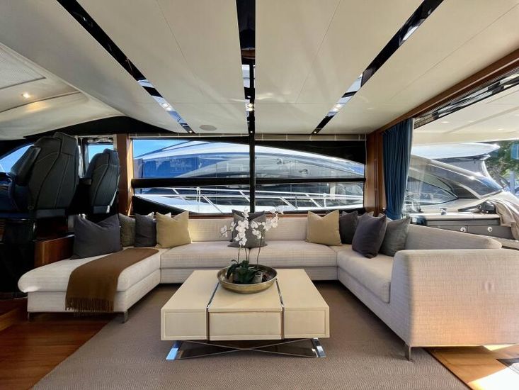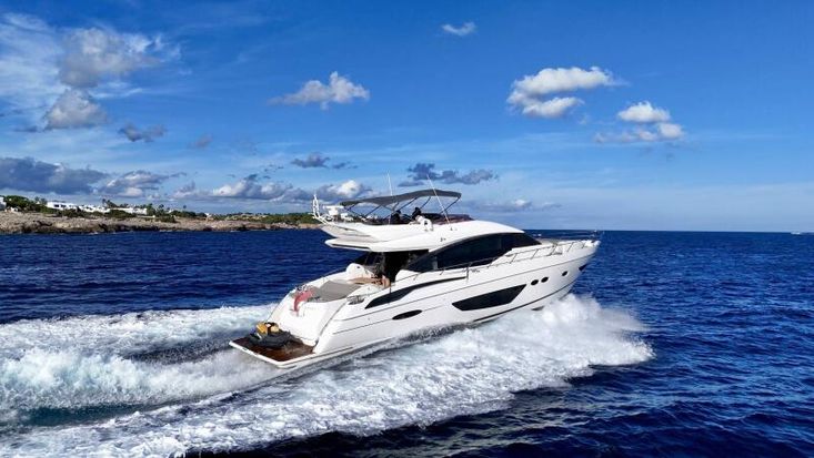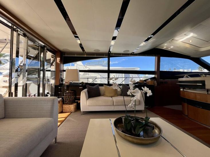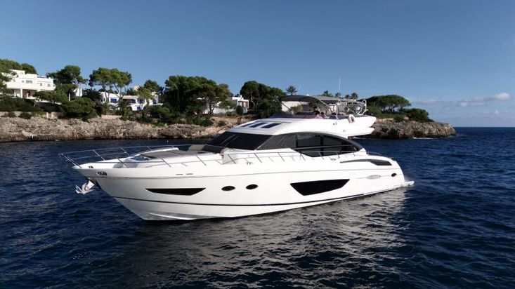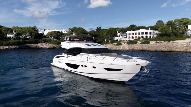A fantastic opportunity to own a beautiful 1 owner 72ft sports fly cruiser, at a great price. We are offering this 2014 Princess S72 fitted with Twin Caterpillar C32 1622hp engines currently running at just 830 engine hours. This brilliant example has all the optional extras including|: Hydraulic bathing platform // Hydraulic paserelle // Transom crew cabin access to twin cabin // Garage capacity for a Williams 325 // Wetbar to cockpit with integrated sink, fridge, and griddle // Portuguese bow seating area // Fusion speaker system throughout // Underwaterlights // Fin stabilisation system // Third control station to aft // Cummins generator // Water maker // Variable speed bow & stern thrusters // Raymarine Navigational equipment including: radar, autopilot and chart plotter // Additional drinks fridge to saloon // Hi-Low television to saloon // Electric retraction Hi-Low cockpit glass door // Electrically retracting sun roof to forward saloon // Side exit mid ships door // Fully catered Galley to lower deck area // 3 generous cabins all with en-suites // Tropical air-conditioning throughout and just so much more. For all the information or to arrange a viewing please contact boats.es today! She is very well priced, EU tax paid and ready to go...